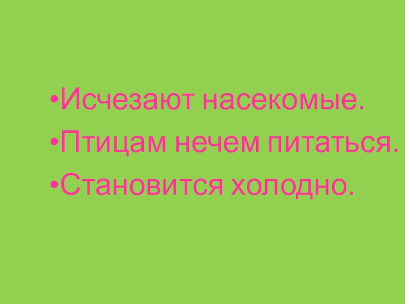 Исчезают насекомые. Птицам нечем питаться. Становится холодно.