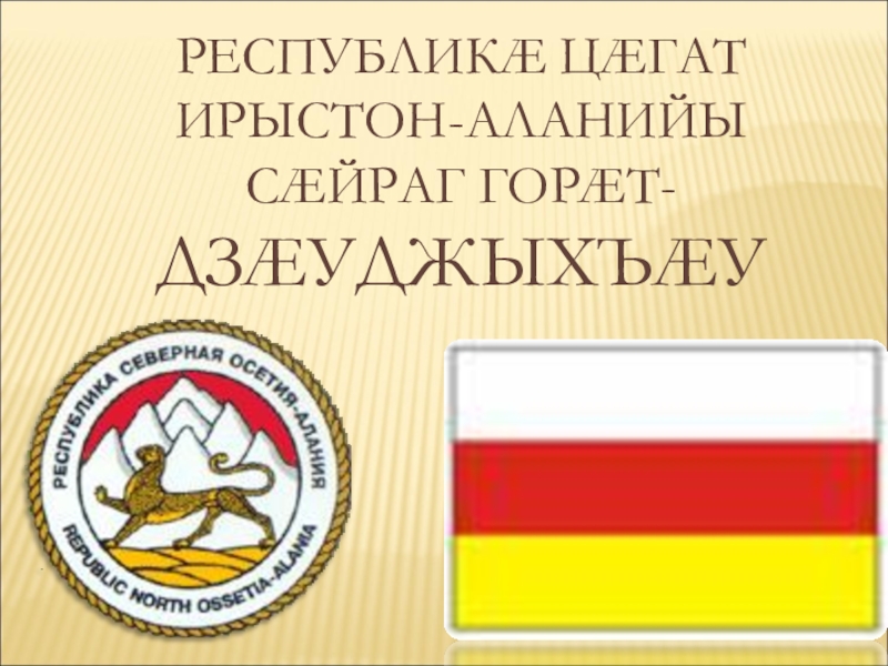 Слайд 4РЕСПУБЛИКÆ ЦÆГАТ ИРЫСТОН-АЛАНИЙЫ СÆЙРАГ ГОРÆТ- ДЗÆУДЖЫХЪÆУ