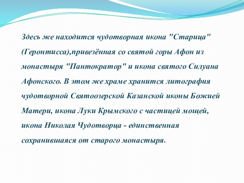 Слайд 14Здесь же находится чудотворная икона "Старица"