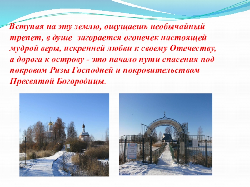 Слайд 20 Вступая на эту землю, ощущаешь необычайный трепет, в душе