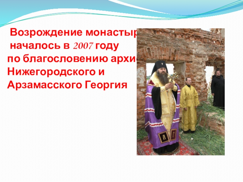 Слайд 7 Возрождение монастыря началось в 2007 году