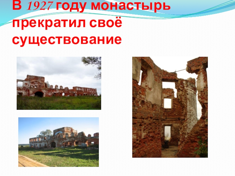 Слайд 5В 1927 году монастырь прекратил своё существование