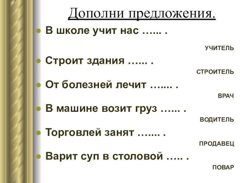 У НЕГО ЕСТЬ ….., ….., ….., ….. .