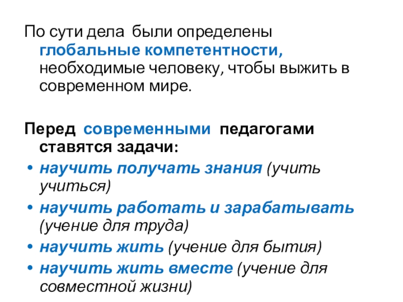 Слайд 9По сути дела были определены глобальные компетентности, необходимые человеку, чтобы выжить