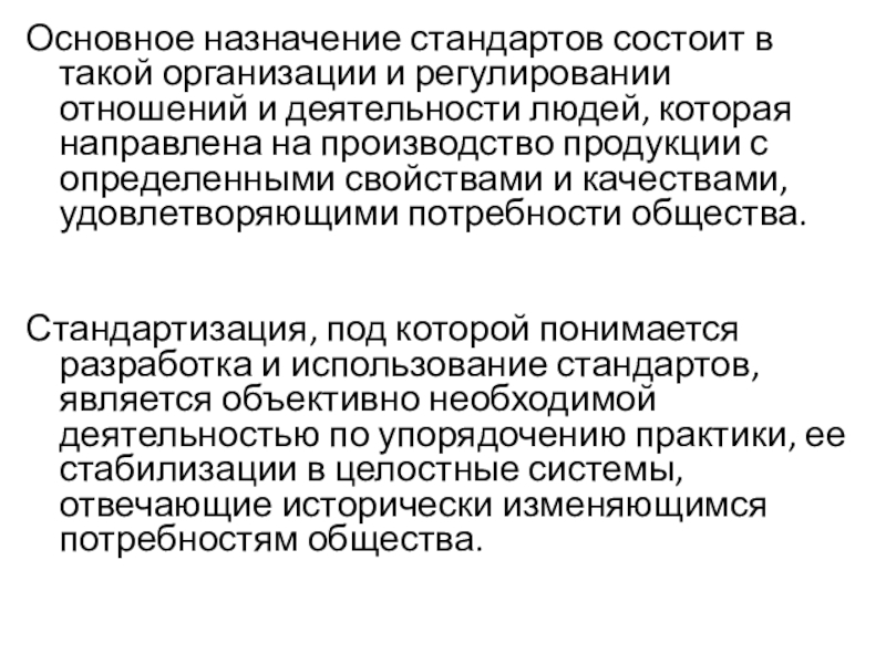 Слайд 2Основное назначение стандартов состоит в такой организации и регулировании отношений и