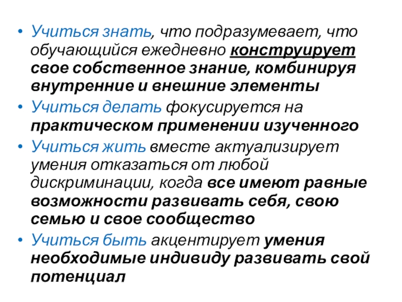 Учиться быть акцентирует умения необходимые индивиду развивать свой потенциал