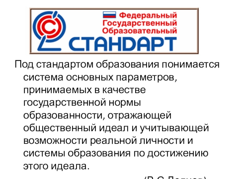 Под стандартом образования понимается система основных параметров, принимаемых в качестве государственной