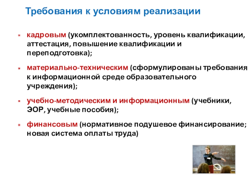 Слайд 29кадровым (укомплектованность, уровень квалификации, аттестация, повышение квалификации и переподготовка);