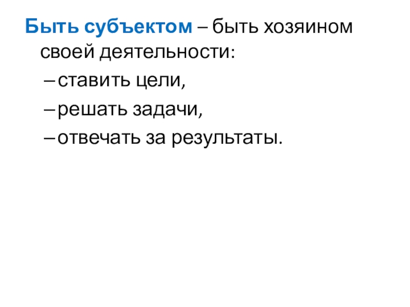 Слайд 37Быть субъектом – быть хозяином своей деятельности: