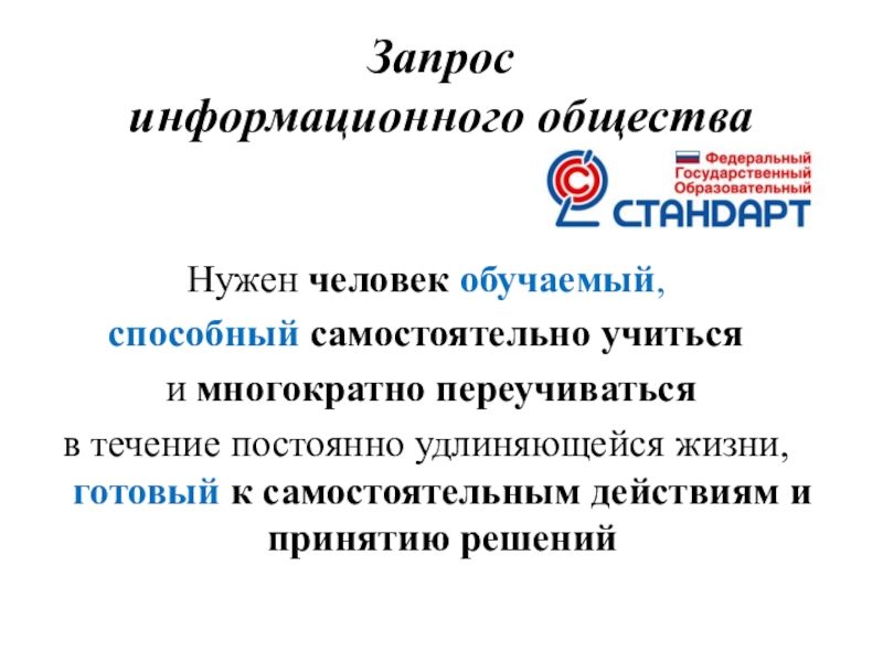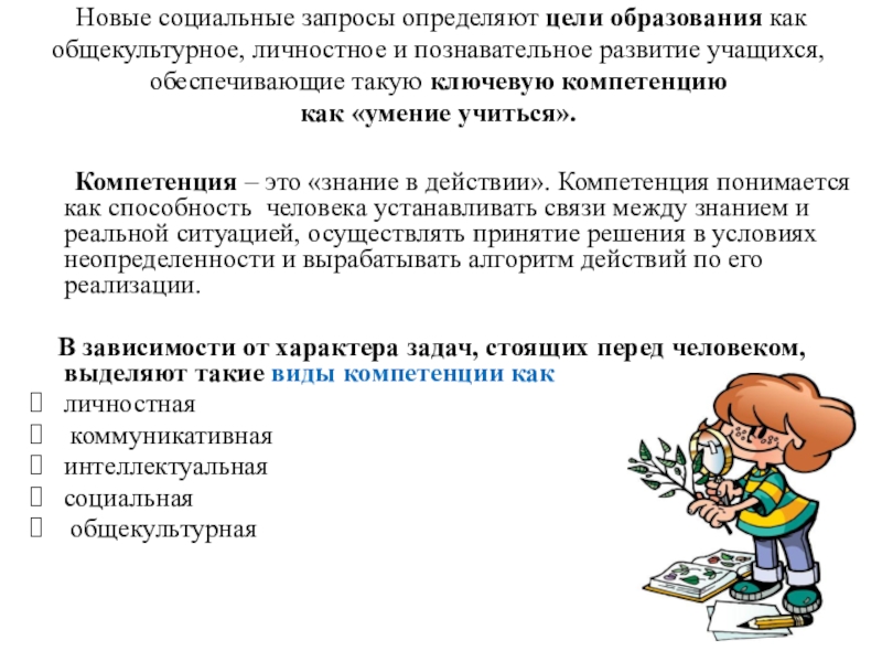 Слайд 17 Новые социальные запросы определяют цели образования как общекультурное, личностное и
