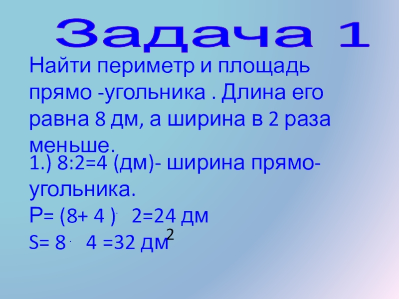 1.) 8:2=4 (дм)- ширина прямо-угольника.