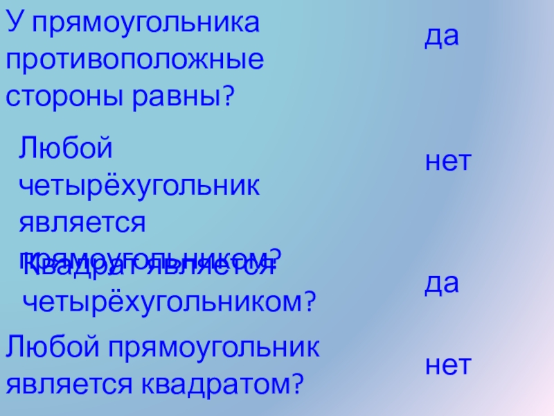 У любого прямоугольника все стороны равны?