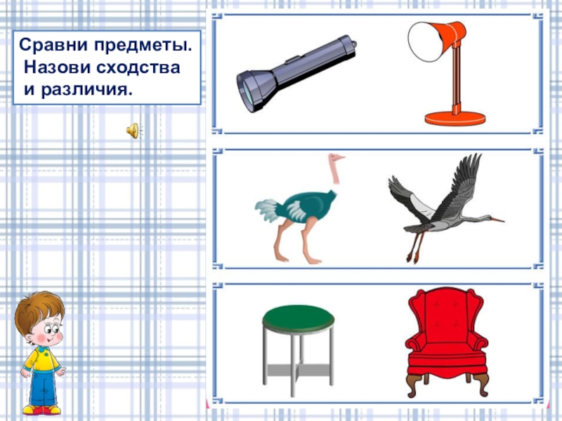 Сравни предметы. Назови сходства и различия.