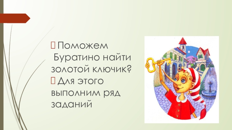 Поможем Буратино найти золотой ключик?Для этого выполним ряд заданий