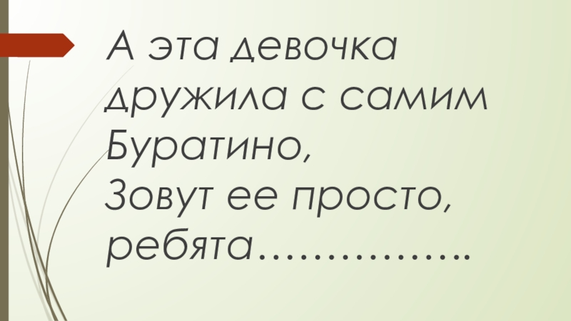 Слайд 5А эта девочка дружила с самим Буратино, Зовут ее просто, ребята…………….