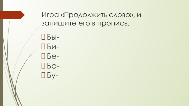 Игра «Продолжить слово», и запишите его в пропись.Бы-Би-Бе-Ба-Бу-