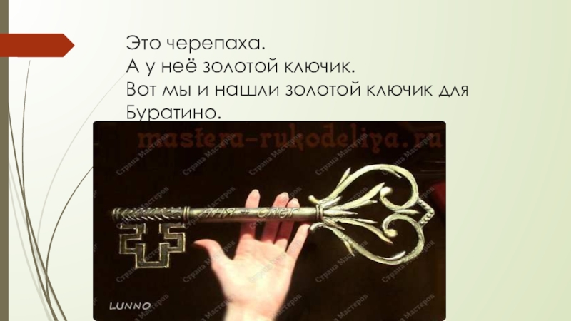 Слайд 16Это черепаха. А у неё золотой ключик. Вот мы и нашли