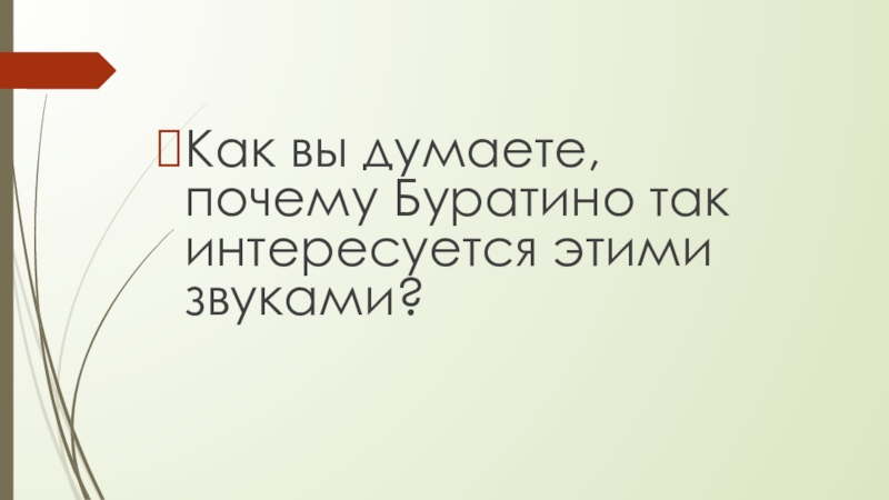 Слайд 8Как вы думаете, почему Буратино так интересуется этими звуками?