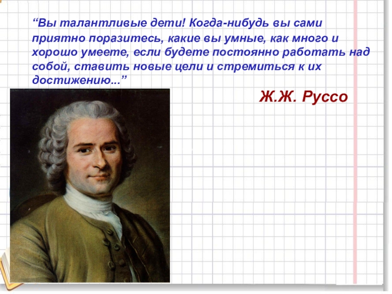 “Вы талантливые дети! Когда-нибудь вы сами приятно поразитесь, какие вы умные, как много и хорошо умеете, если будете постоянно работать над собой, ставить новые цели и стремиться к их достижению...”