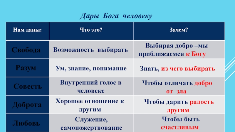 Дары Бога человеку