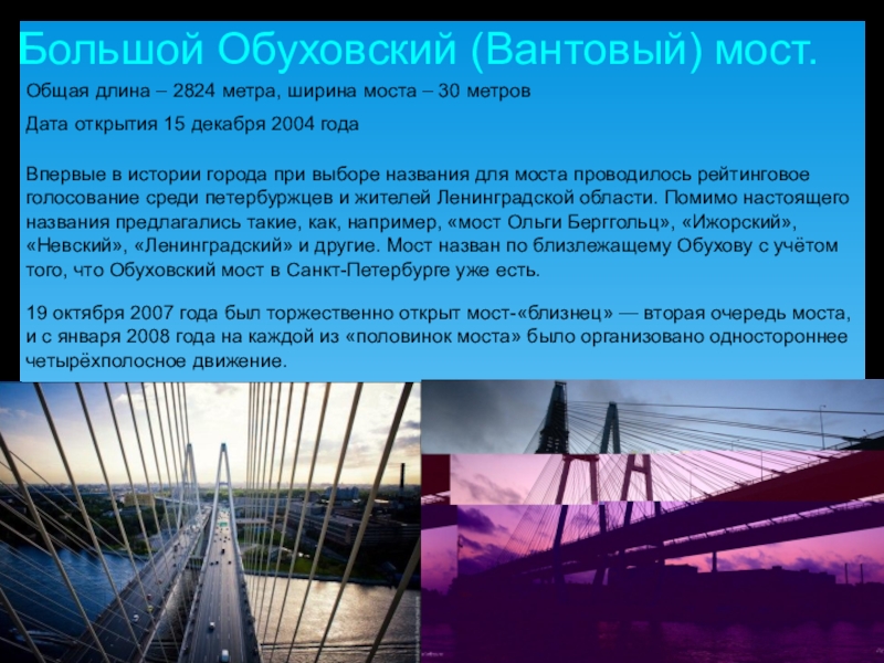 Длина моста 335 метров, ширина — 23,5 метра.