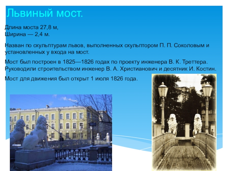 Скульптурные группы на восточных устоях установлены в 1850 году.