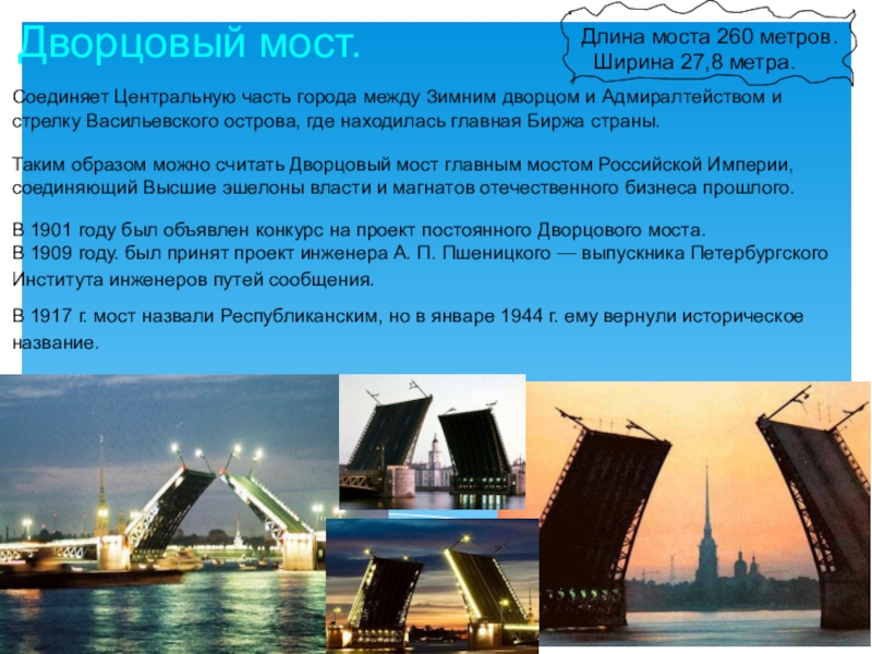 В 1901 году был объявлен конкурс на проект постоянного Дворцового моста.