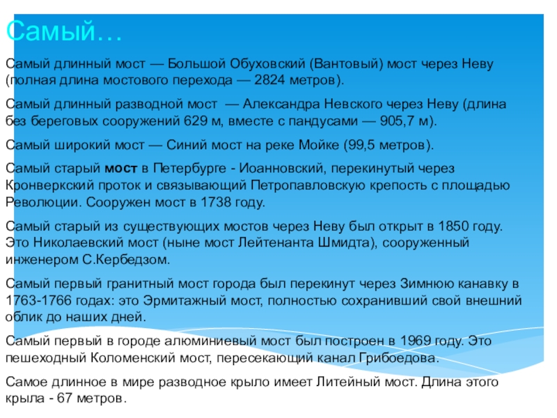 Это был самый длинный петербургский мост XVIII века (890 м).