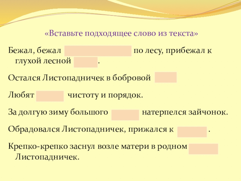 Слайд 23«Вставьте подходящее слово из текста»