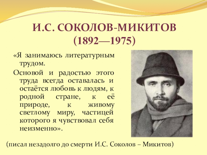 (писал незадолго до смерти И.С. Соколов – Микитов)