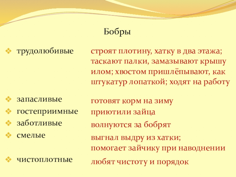 А знаете ли вы, что у бобров много врагов, которые часто разрушают их хатку? Назови тех, которые встретились вам во время чтения.