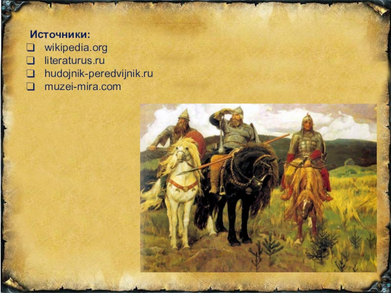 Над картиной «Богатыри» Васнецов В.М. работал почти двадцать лет.