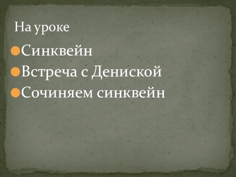 На урокеСинквейнВстреча с ДенискойСочиняем синквейн