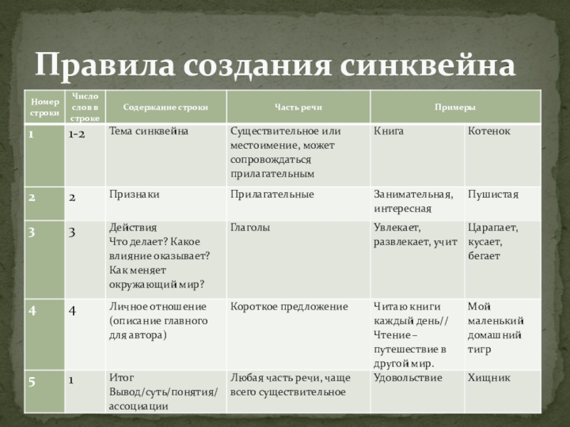 Правила создания синквейна