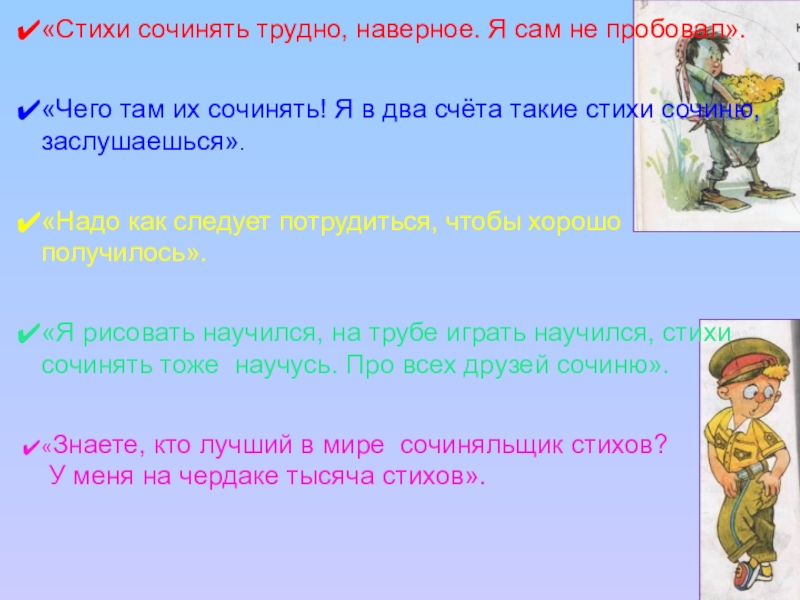 Слайд 5«Стихи сочинять трудно, наверное. Я сам не пробовал».