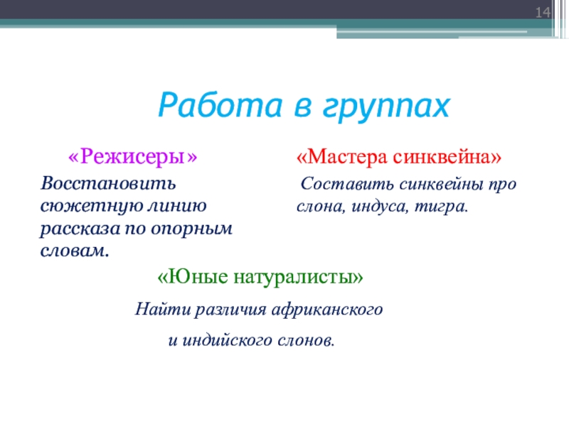 Составить синквейны про слона, индуса, тигра.
