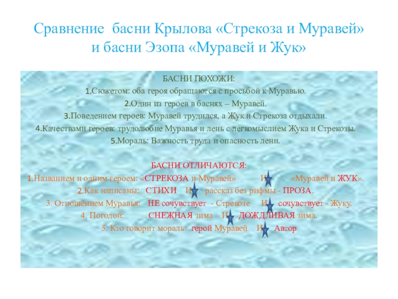 Названием и одним героем: «СТРЕКОЗА и Муравей» И «Муравей и ЖУК».