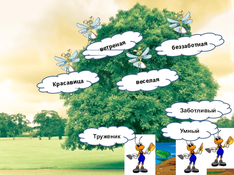 3. Отношением Муравья: НЕ сочувствует - Стрекозе И сочувствует - Жуку.