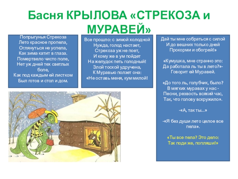 Говорит ей Муравей.