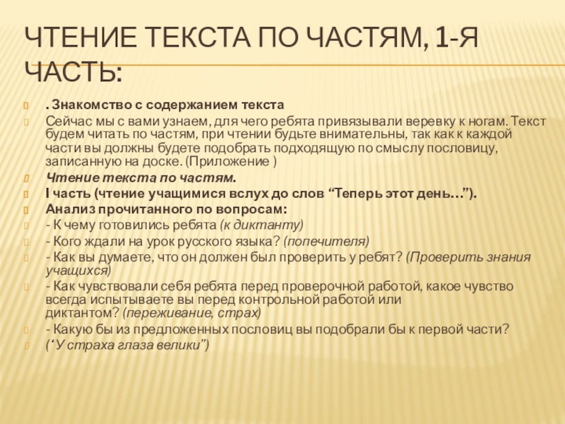 Слайд 22Чтение текста по частям, 1-я часть: