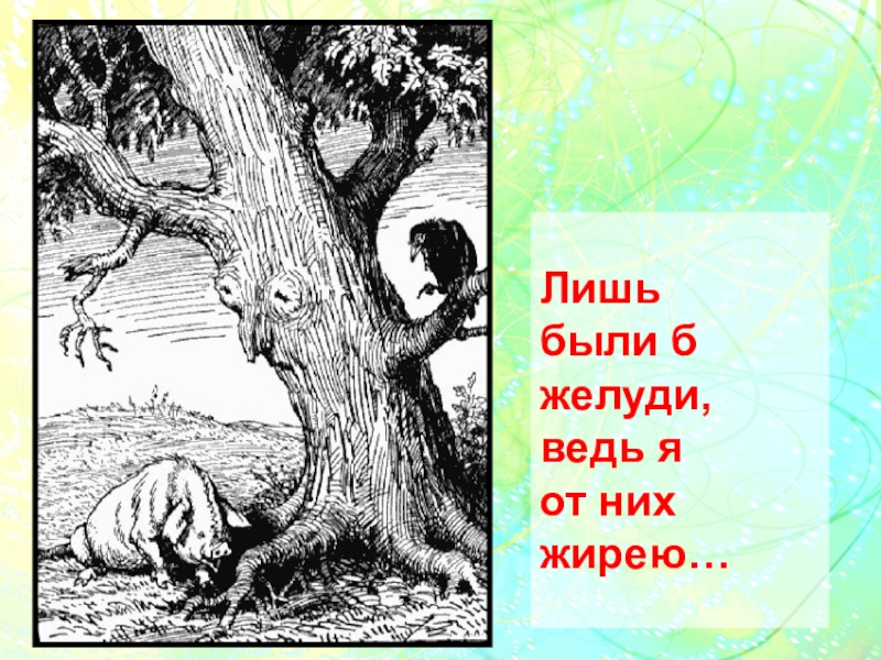 Слайд 17Лишь были б желуди, ведь я от них жирею…