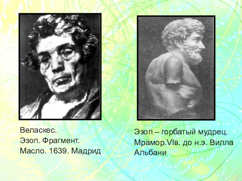 Веласкес.   Эзоп. Фрагмент.  Масло. 1639. Мадрид  Эзоп – горбатый мудрец.