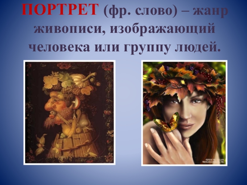 ПОРТРЕТ (фр. слово) – жанр живописи, изображающий человека или группу людей.