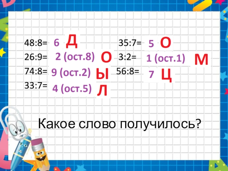 Презентация, доклад к уроку по математике 3 класс. Деление с остатком