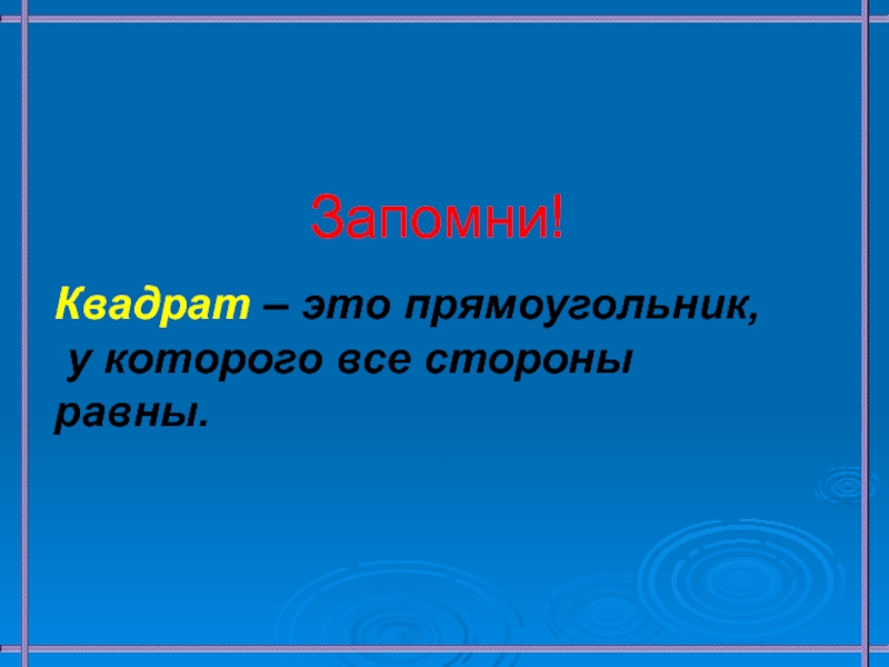 Запомни!Квадрат – это прямоугольник, у которого все стороныравны.