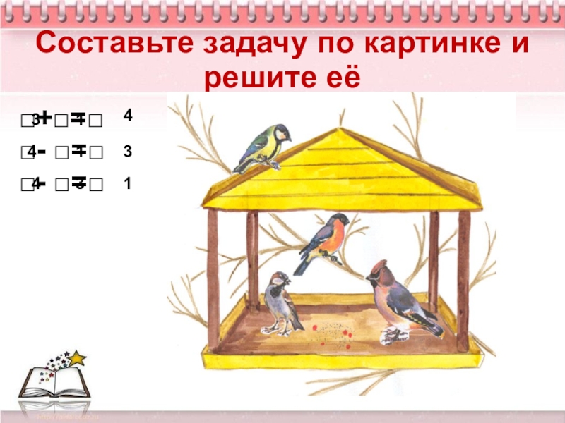 Составьте задачу по картинке и решите её□+□=□□- □=□□- □=□311144433