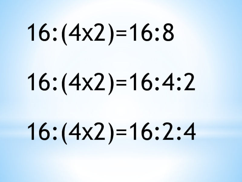 16:(4х2)=16:816:(4х2)=16:4:216:(4х2)=16:2:4