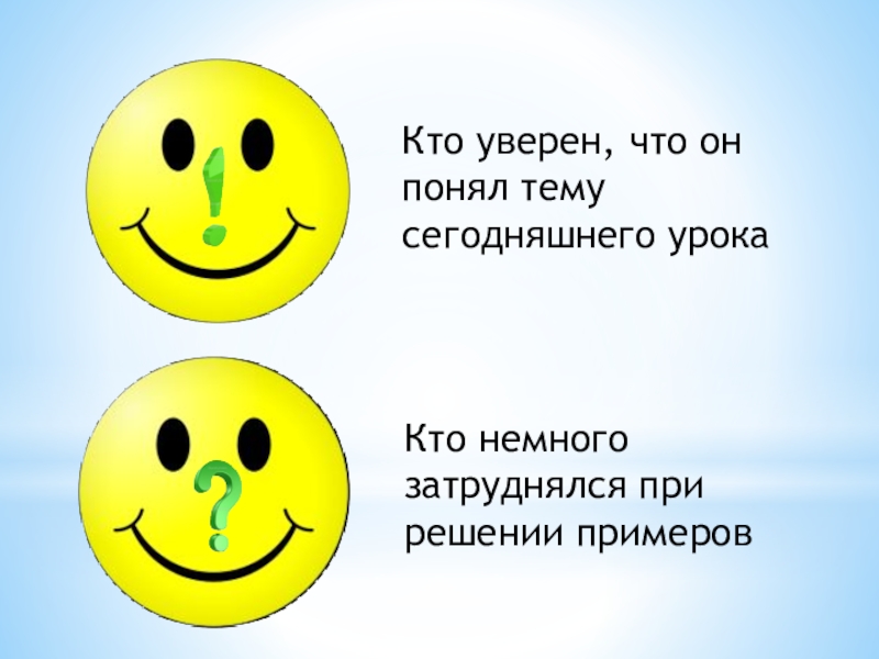 Кто уверен, что он понял тему сегодняшнего урока Кто немного затруднялся при решении примеров