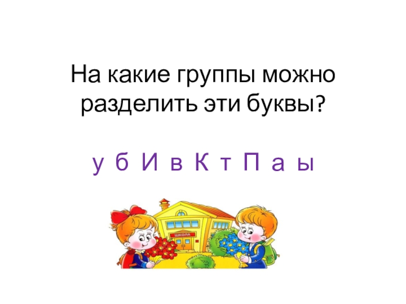Слайд 5На какие группы можно разделить эти буквы? у б И в К