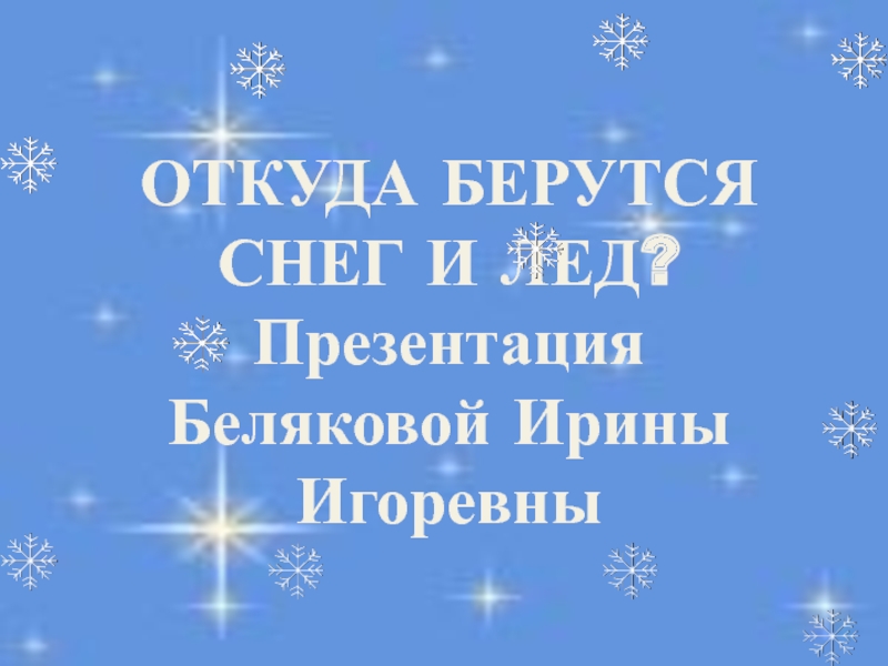 ОТКУДА БЕРУТСЯ СНЕГ И ЛЕД?Презентация Беляковой ИриныИгоревны